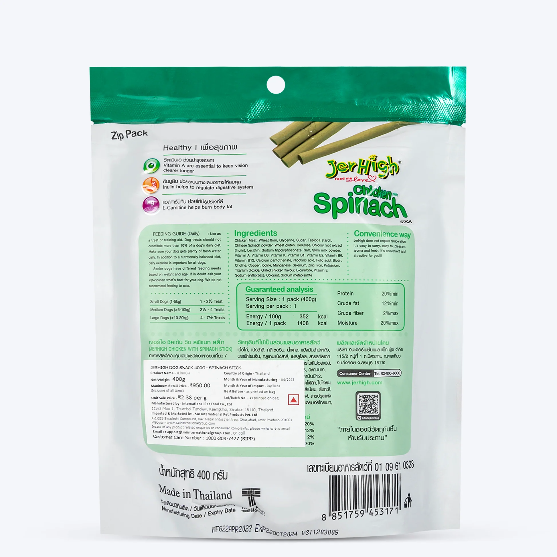 JerHigh Chicken Spinach Stick Dog Treats